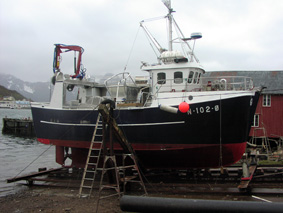 Ombygget hos G.W.Nilsen AS. Forkortet hekk i aluminium. Forkortet baug i aluminium.